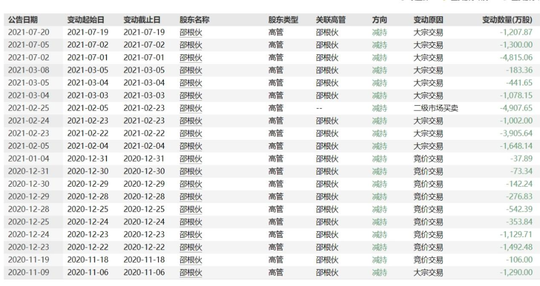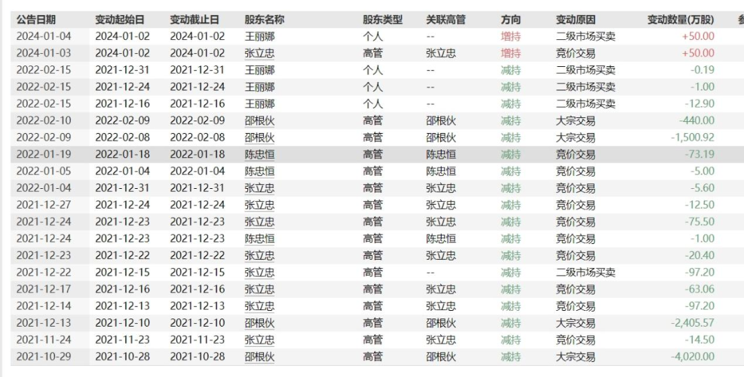 拉长时间来看,还有更多股东下场减持。2021年以来,邵根伙频频减持公司股票,与此同时,前监事会主席陈忠恒、副董事长张立忠也纷纷减持。