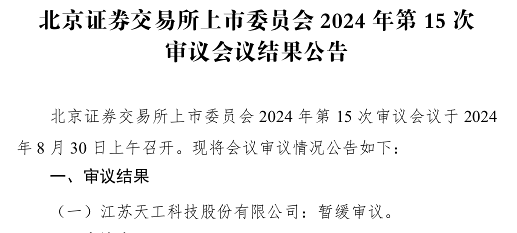 相比葫芦娃的被否,天工股份(834549.NQ)勇闯北交所,录得“暂缓审议”的结果,算是温柔的。