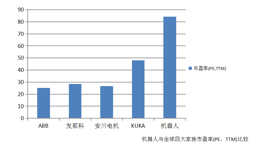 尽管截至3月10日收盘,机器人的市盈率已经下降为84.28倍,不过在技术与市场占有率均大幅落后全球机器人“四大家族”的情况下,公司的估值仍然偏贵。目前瑞士ABB的市盈率为25.28倍,日本发那科和安川电机分别为28.52倍和26.57倍,而2016年美的集团(000333.SZ)收购德国KUKA的市盈率为48倍,均大幅低于机器人目前的市盈率。