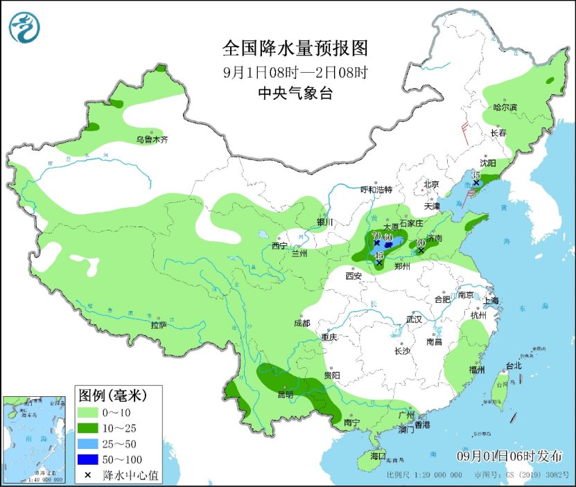 中央气象台9月2日消息,昨日,西北地区中东部、西南地区东部和南部、江南东部、华南及内蒙古中部、山西北部、河北东北部等地出现分散性大雨或暴雨,局地有大暴雨。预计今天,降雨将主要出现在山西南部、河南西部、山东西部、辽宁西部等地,降雨量以中到大雨为主,局地有暴雨 ,公众需警惕短时强降水、冰雹、雷暴大风等强对流天气。