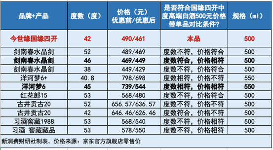 其次,“出厂价500元价格带”的上限和下限如何界定?也并没有给出明确的说明,更何况白酒售价和出厂价也存在一定差异。例如国缘四开的实际售价并不足500元。