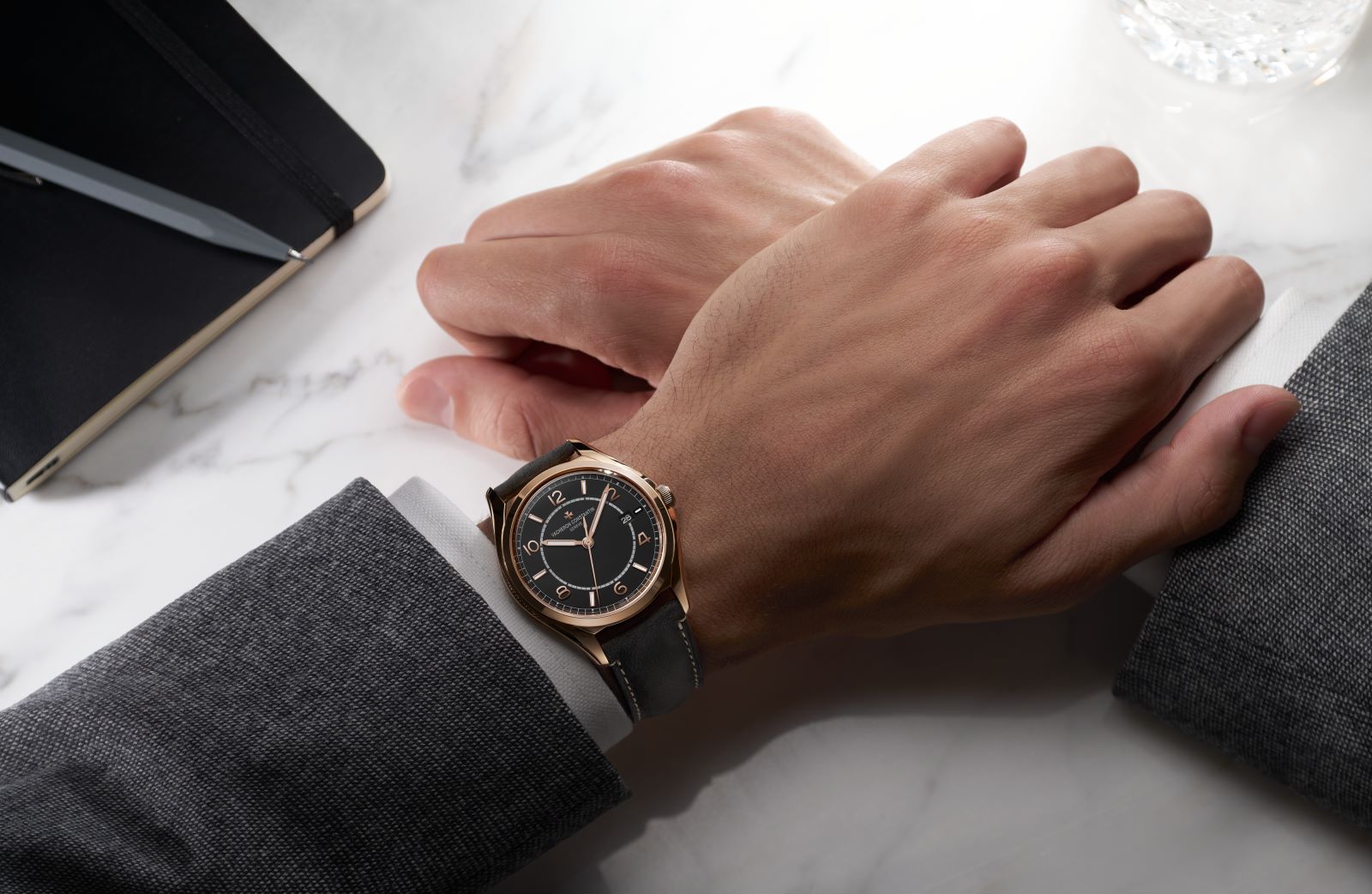 这款腕表搭配玄墨灰磨面小牛皮表带,配衬淡褐色缝线,整体呈现复古现代设计风格。透过蓝宝石水晶表底盖,佩戴者可以欣赏到1326自动上链机芯上雕刻的日内瓦波纹装饰,其中粉红金镂空摆陀饰还有马耳他十字品牌标志。