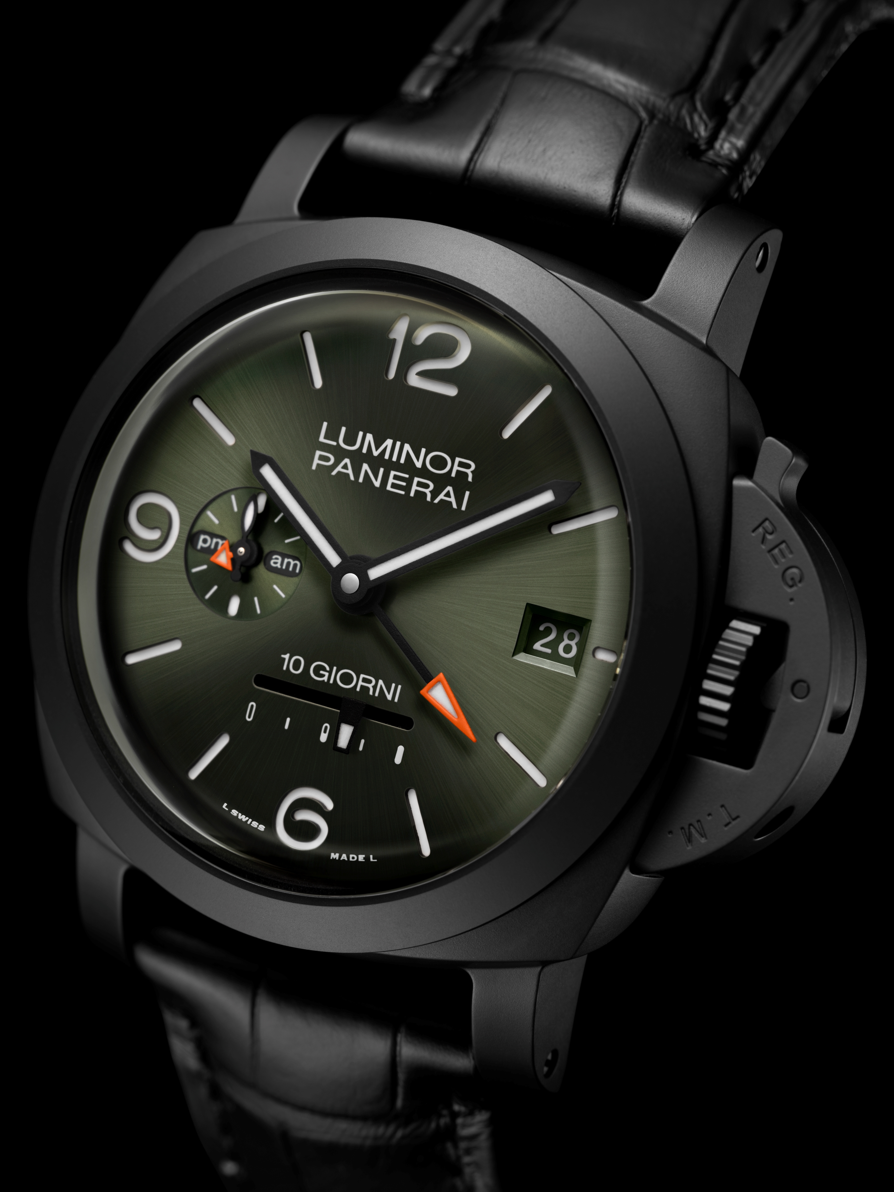 沛纳海全新Luminor庐米诺系列十日动储两地时自动上链腕表