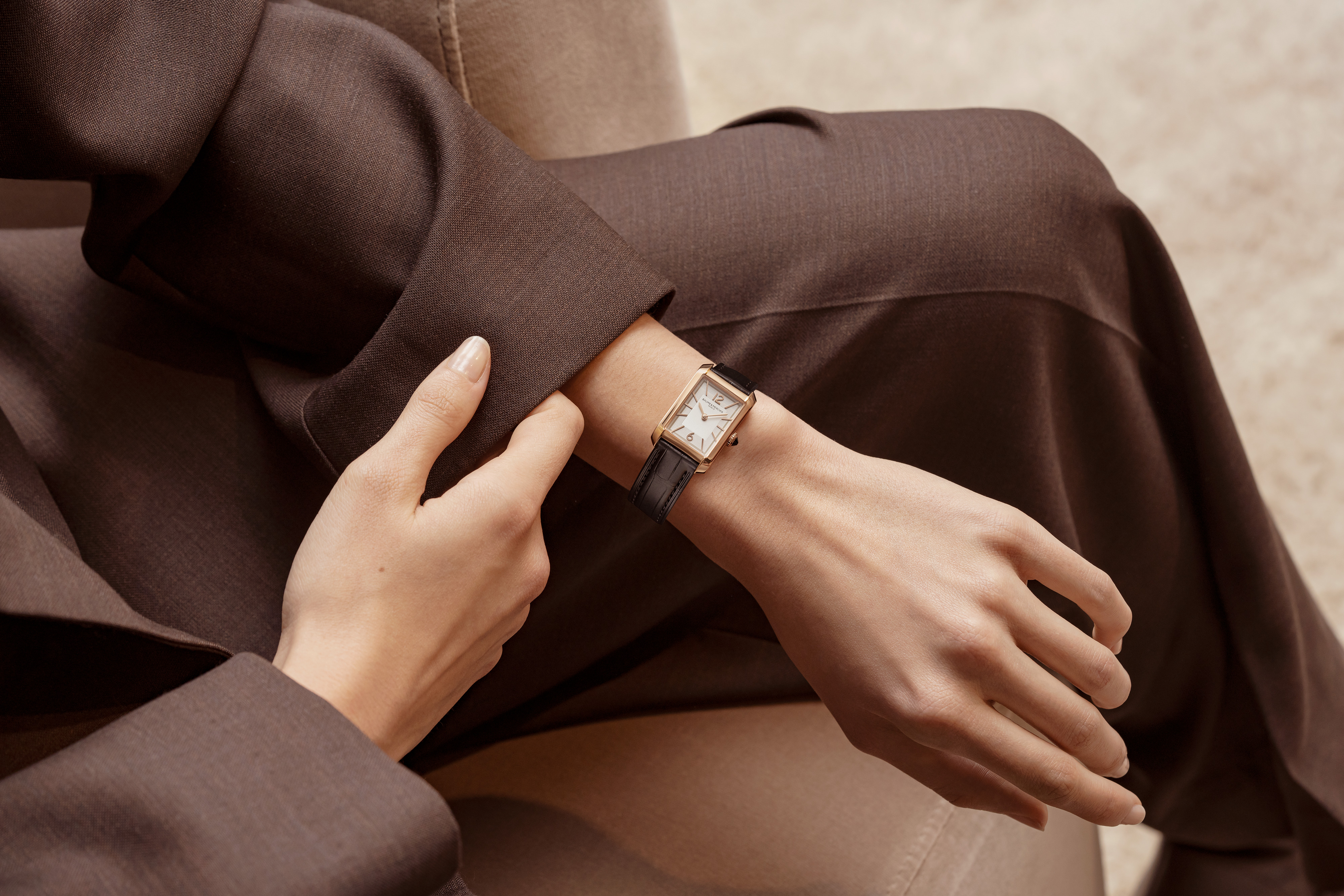 其中,名士表的汉伯顿系列推出了两款新作,展现其优雅的矩形造型。一款采用玫瑰金材质,搭配黑色鳄鱼皮表带;另一款采用精钢材质,搭配精钢和精钢镀玫瑰金双色表带。