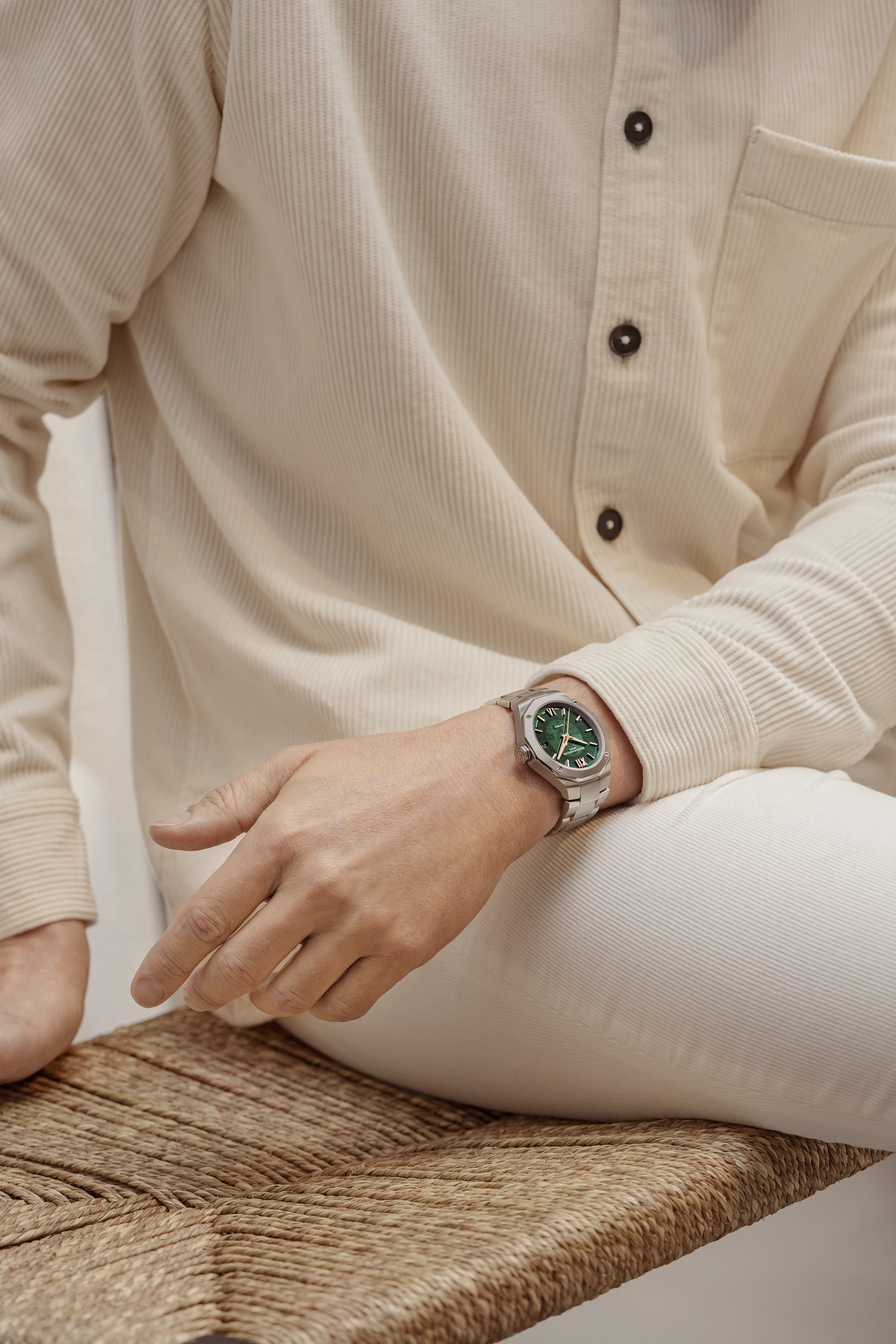 新品“绿松林”与“粉桃花”分别采用烟熏蓝宝石表盘和漆面太阳纹磨砂表盘,搭配精钢表带,整体气质优雅。“绿松林”款采用金色罗马数字、条形时标和指针,搭载名士表自产机芯,走时精确;“粉桃花”的赤陶色表盘则体现了这款中性腕表精致考究的气质。