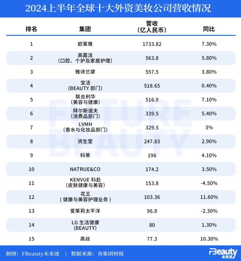 2024上半年,全球美妆巨头们在中国市场可谓是“负声一片”。欧莱雅、雅诗兰黛、宝洁、联合利华、LVMH、资生堂等均有不同程度的下滑。而中国市场的业绩疲软也是集团总体业务放缓的主要原因。