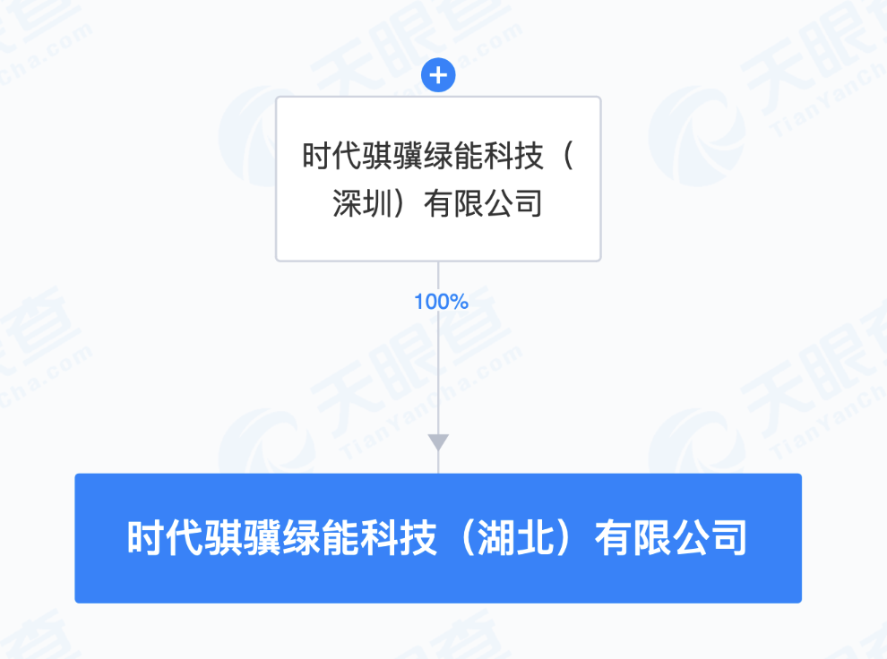 天眼查App显示,近日,时代骐骥绿能科技(湖北)有限公司成立,法定代表人为刘二龙,注册资本500万元,经营范围含新兴能源技术研发、新能源汽车换电设施销售、在线能源计量技术研发、输配电及控制设备制造等。股东信息显示,该公司由宁德时代旗下时代骐骥绿能科技(深圳)有限公司全资持股。