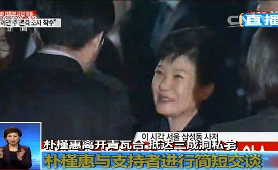 韩国前总统朴槿惠于当地时间18时56分(北京时间17时56分)在摩托车队的保护下离开青瓦台总统府,并于30分钟后抵达位于首尔南部三成洞的私邸。