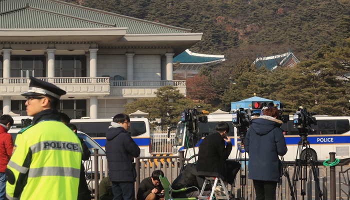 下午,亲朴派议员也来到青瓦台,和600名支持者一起等待着送别她。支持者基本都在50岁左右。因为朴槿惠的父亲、前总统朴正熙曾将带领韩国有了比较好的发展。