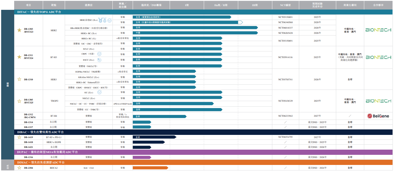 映恩生物表示,公司旨在于未来几年内将多种双特异性和免疫调节ADC推进临床阶段,且每年至少取得一到两项IND获批。该公司于2024年启动DB-1419(B7-H3xPD-L1双特异性ADC)的I/IIa期全球临床试验,并计划于同年提交DB-2304(BDCA2ADC)的IND。公司正在进行DB-1418(HER3xEGFR双特异性ADC)的IND支持性研究,并预计于2025年将该分子推进至临床阶段。