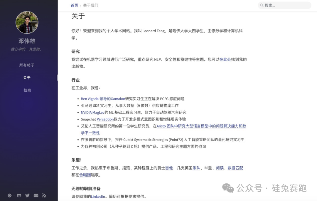 从其哈佛网站的个人主页来看,Leonard Tang在大学期间的经历丰富多彩。除了学业上对LLM模型广泛研究,他还拥有在多家AI大厂实习的经验,比如说在英伟达MagLev的ML基础工程实习生,参与到自动驾驶汽车研究。再比如说,作为亚马逊SDE实习生,从事大数据供应链物流工作。