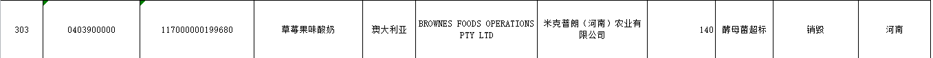 2017年3月13日,《财经啸侃》特约、独家撰稿人五谷君从国家质检总局方面获悉,来自澳大利亚的草莓果味酸奶,因为酵母菌超标,被销毁处理,制造商英文名字是BROWNES FOODS OPERATIONS PTY LTD,由河南的米克普朗(河南)农业有限公司负责进口。