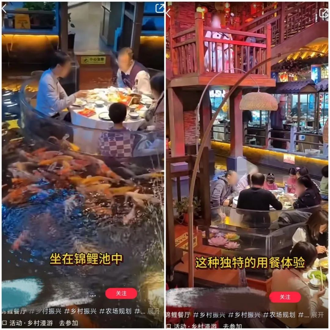 国内也有一些餐厅绞尽脑汁增加餐厅的场景互动性和趣味性,比如河北保定的一家“锦鲤餐厅”,用餐区就位于锦鲤池中,顾客吃饭时,身旁环绕着游来游去的锦鲤,可以一边吃饭一边赏鱼、喂鱼。