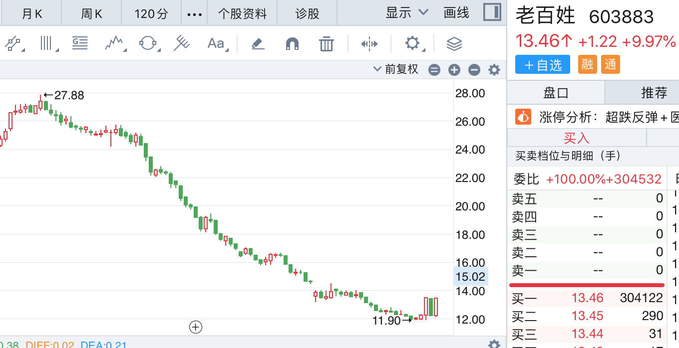不过随着8月30日反弹,在指数放量上攻的支撑下,老百姓也录得涨停。而后9月首个交易日,老百姓股价又大跌9.33%,股价回到低洼处,心态破防下当天换手率10.51%,成交额近10个亿,一度还被市场调侃。不曾想也正是在升跌间筹码的松动带来了活跃度,9月3日,老百姓早盘平开10分钟后发力,大量买单涌入下,9点47分再度被顶上了涨停,股价回升到13.46元。