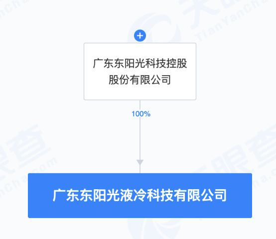 天眼查APP显示,近日,广东东阳光液冷科技有限公司成立,法定代表人为胡来文,注册资本1亿元,经营范围包含:云计算设备制造;云计算设备销售;人工智能硬件销售;5G通信技术服务;电池制造;电池零配件生产;集成电路芯片设计及服务等。天眼查股权穿透显示,该公司由东阳光全资持股。