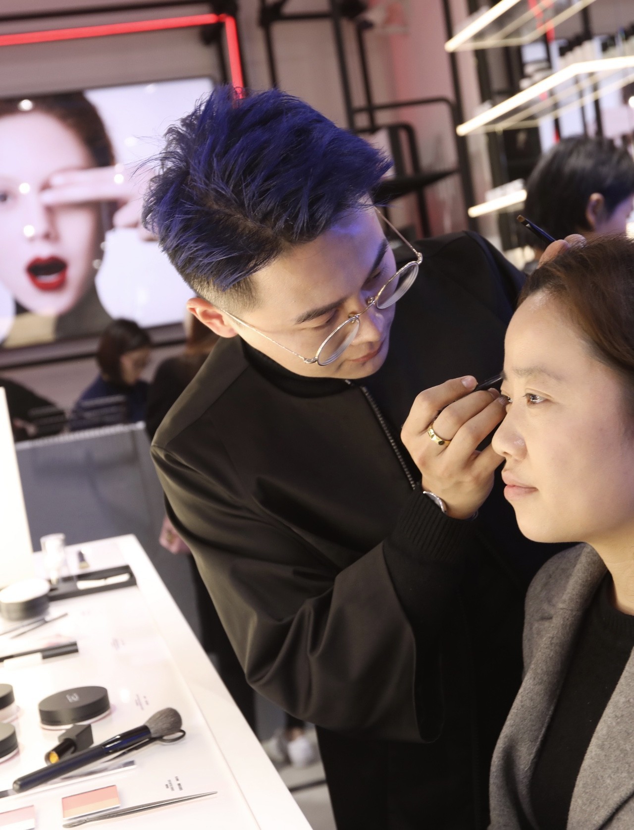 在73平方米的门店内,试妆区占据了将近20%的面积。同时,这家门店配备有 5名彩妆师和1名店长。