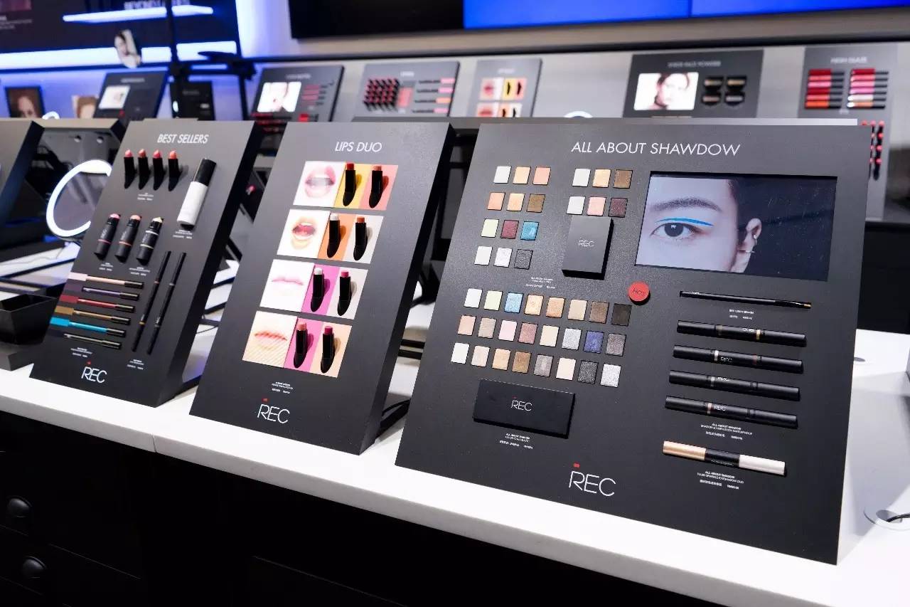 REC店内的彩妆产品涵盖了卸妆、底妆、眼妆、唇妆及彩妆工具等细分品类。