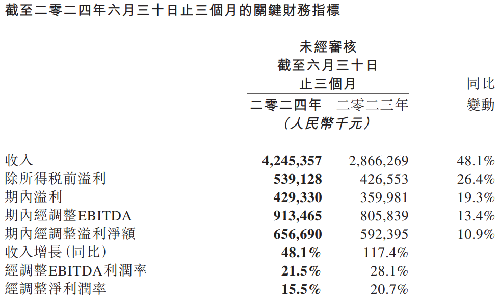 再来看同程。根据财报,2024年第二季度,同程的营业收入为42.45亿元,同比增长48.1%,环比增长9.80%;净利润为4.29亿元,同比增长19.3%;经调整EBITDA为9.13亿元,同比增长13.4%;经调整EBITDA利润率为21.5%,较去年同期下降6.6个百分点。