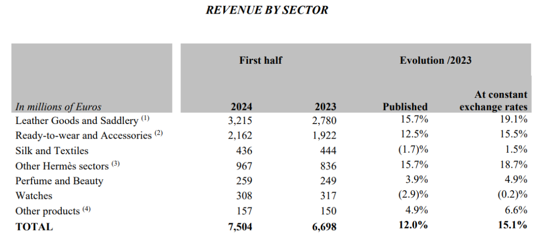 爱马仕集团各部门业务表现 图源:爱马仕集团2024年H1财报