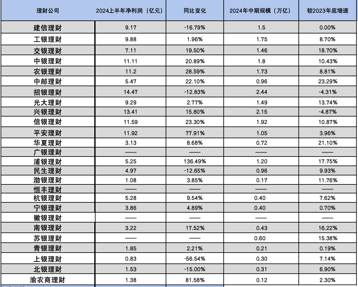 随着A股中报季收官,各银行理财公司的经营情况和业务进展也随着母行财报的披露浮出水面,总体来看,2024年上半年多数银行理财都走出了规模缩减的阴影,取得了规模正增长。但在“打法”上不同理财公司还是各有侧重点。