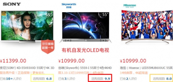 与追求低端性价比的普通消费群不同,目前在面向高画质和高配置的电视市场中,一万元成为高端受众的选购心理中轴线。以日系“画质先锋”品牌为例,其55英寸9300系列价格高达11400元;另一个高园园代言的日系品牌,55寸量子点电视售价也为一万元;高端电视价格轴线上,国产品牌的定价也不遑多让,以青岛品牌MU8600系列为例,其55英寸曲面电视市场售价在促销策略后竟也高达9999元。