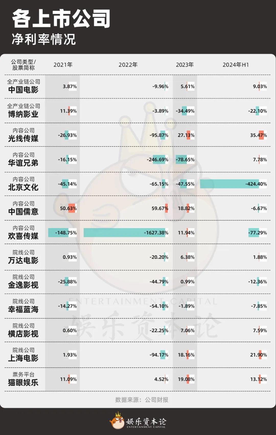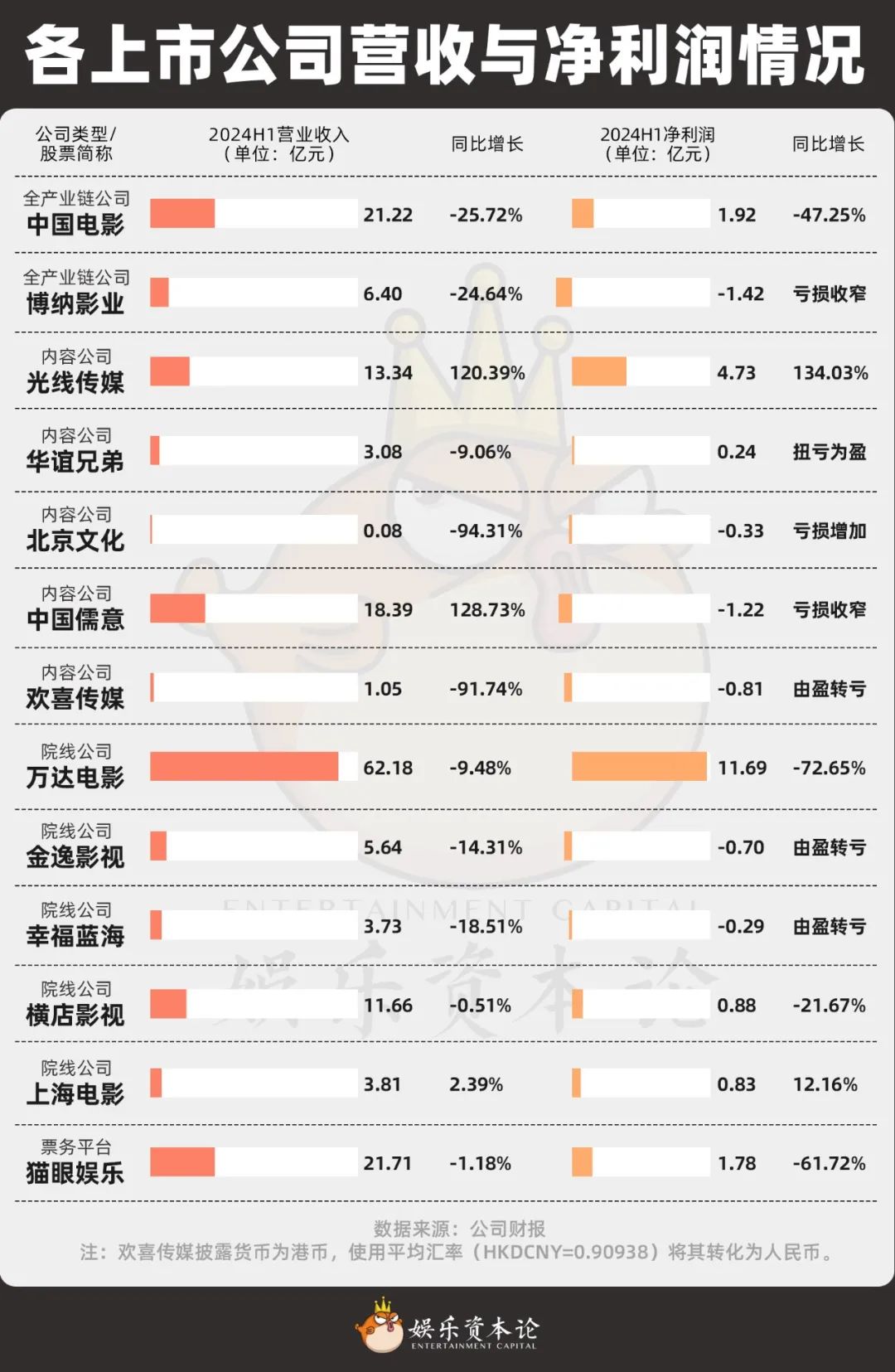 上半年业务表现活跃、业绩表现亮眼的仍属中国电影、猫眼娱乐、以及“儒万系”。这四家企业对全产业链都具有一定参考意义。