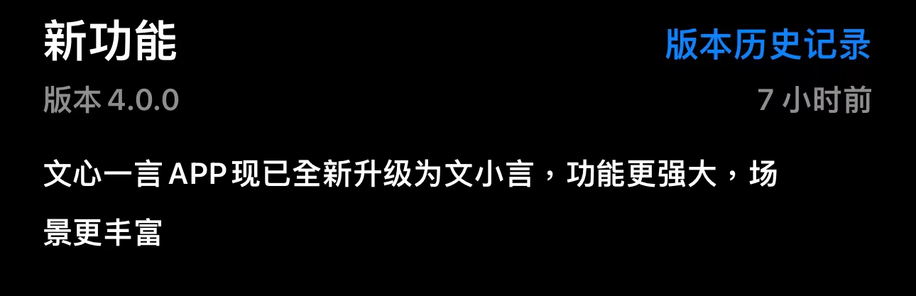 9月4日,百度文心一言App获推4.0.0版本升级,更新日志显示,文心一言升级为“文小言”,号称“功能更强大,场景更丰富”。