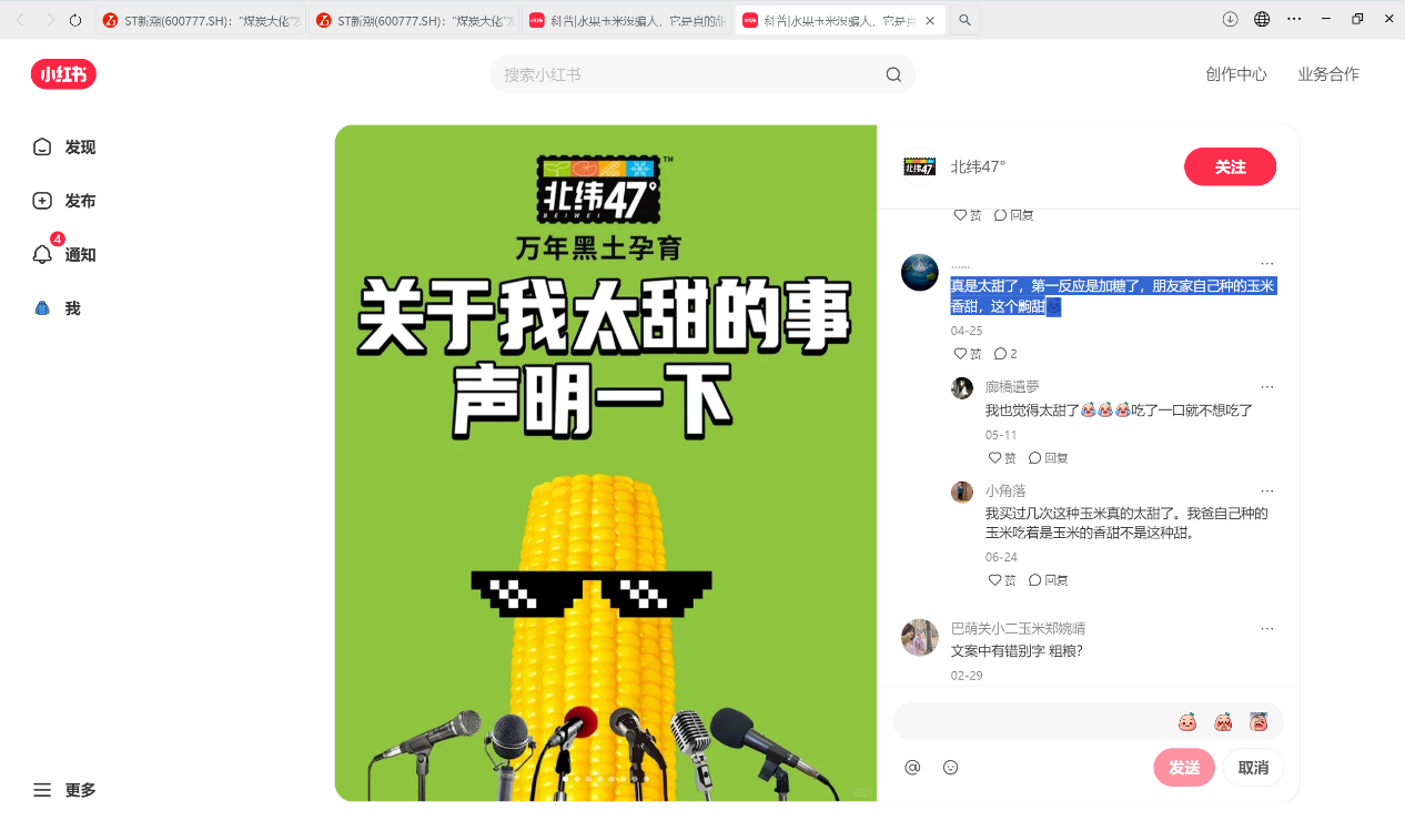 关于低GI食品的探讨和质疑,同样出现在北纬47度发布的官方科普帖的评论区。有网友这样留言:“真是太甜了,第一反应是加糖了,朋友家自己种的玉米香甜,这个齁甜 。”“这真的是低GI的吗?那么甜,我都害怕得不敢吃,怕血糖更高了。”