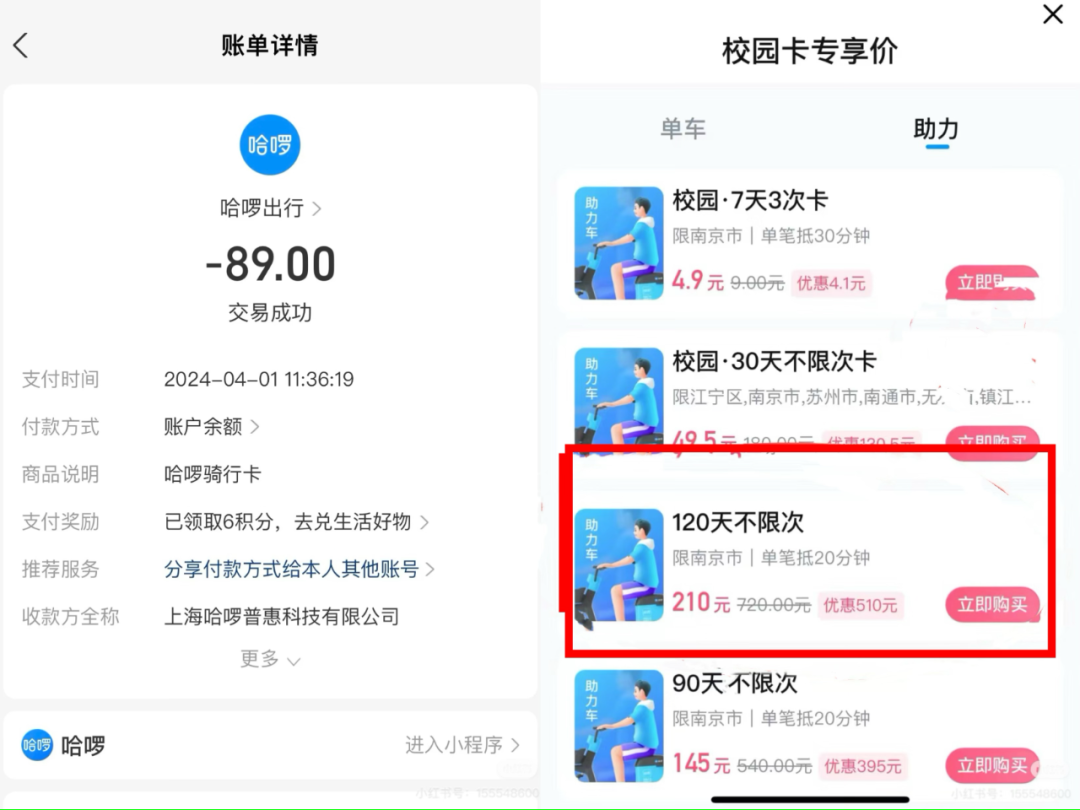 除了单次骑行的收费标准发生了变化,月卡、周卡和学期卡等各种骑行卡的费用也有所变化。其中,有网友提到,青桔电单车地7天7次骑行卡之前价格在2-3元,但最近涨至4元左右。另一位网友则提到南京市的哈啰助力车校园卡也涨价了,“上学期买的学期卡89元,这个学期快开学了点进去一看,120天要210元?请问哈啰你这个价格的意义是什么?为了多骗点大学生的钱吗?”