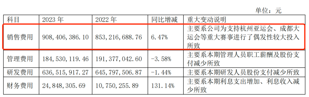 不仅如此,2023年,安恒信息为支持杭州亚运会、成都大运会等重大赛事进行了偶发性的较高投入,销售费用也同比增长6.47%。