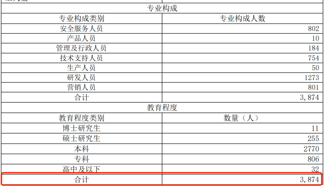 2023年,安恒信息员工数量缩减至3874人,较2022年减少了476人。其中,研发人员是裁员的核心群体,由2022年的1505人减少至2023年的1273人,研发人员缩减了232人。