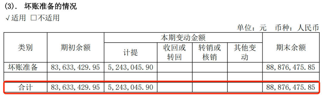应收账款居高不下,也导致企业的坏账准备不断走高。财报显示,坏账准备金额由期初的8363.34万元增长至2024年上半年的8887.65万元。