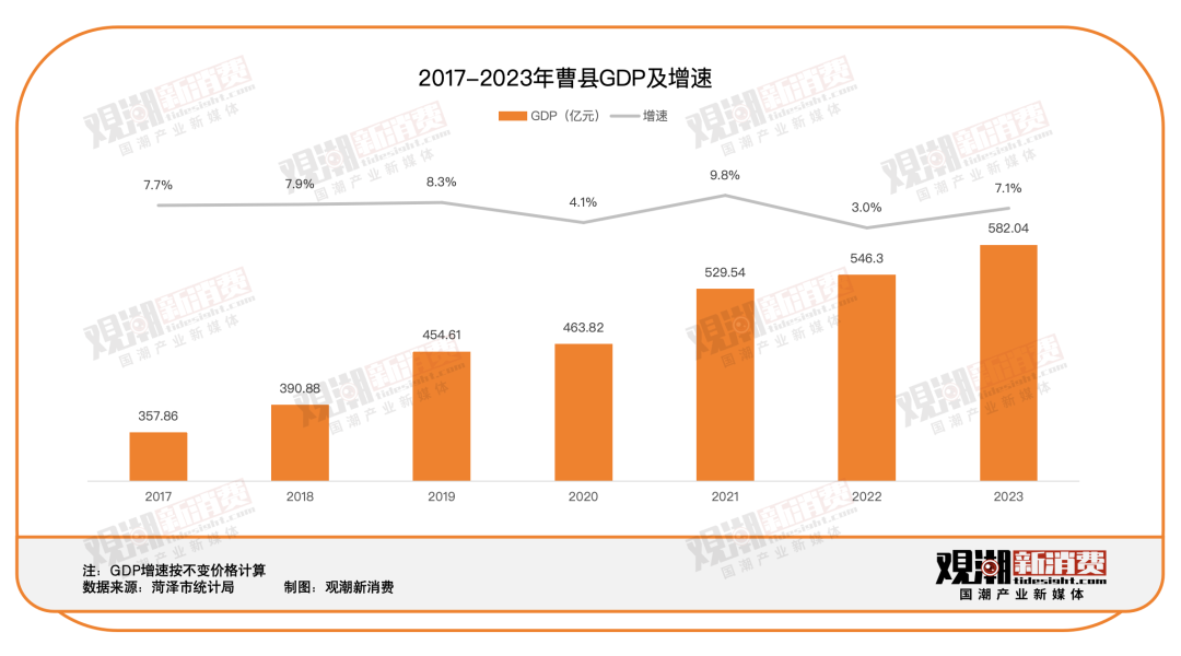 放大到整个县域,就是一个贫困县逆袭的故事。2017年以来,曹县GDP稳步增长,这是曹县对网络上的吹捧与诋毁一笑而过的底气。