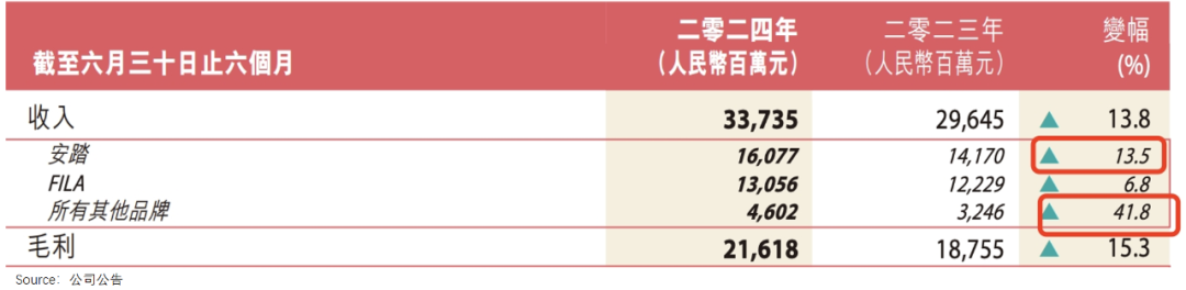 与之相比,夹在中间的品牌就显得乏力了。如李宁2024Q1同店销售同比再次下滑;FILA的增长,也被走大众路线的安踏主品牌以及高端的迪桑特等甩在后面。