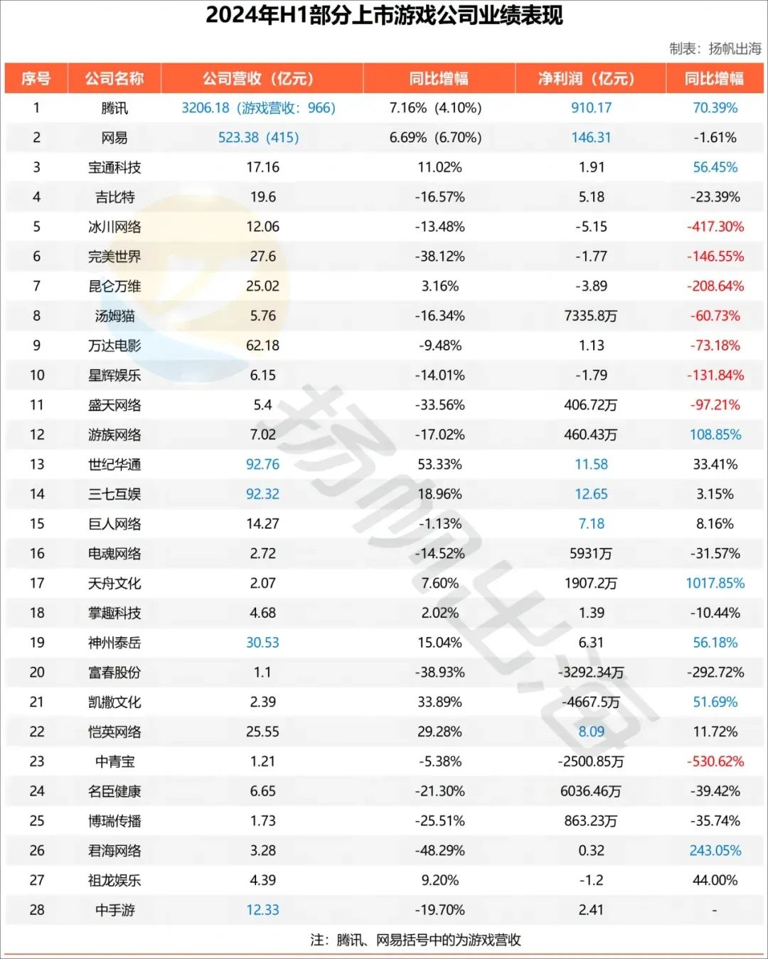 眼看2024即将进入第四个季度,在此期间,各大游戏上市公司们陆陆续续公布了2024年H1业绩,扬帆出海统计并梳理了28家财报中的关键信息点,包括流水、营收、买量投入、游戏储备等,借此机会,我们也可以一窥未来游戏市场的“钱”景。