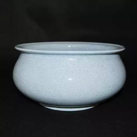 汝窑的艺术匠师将这种难以控制的、千变万化的釉病,通过人为地操作转换为一种自然美妙的装饰,而且控制的恰到好处,可谓巧夺天工的绝活。釉面开片较细密,多呈斜裂开片,深浅相互交织叠错,象是银光闪闪的片片鱼鳞,或呈蝉翼纹状,给人以排列有序的层次感。釉中细小沙眼呈鱼子纹、芝麻花和蟹爪纹。并有典型的桔皮釉、冰片釉、茶叶沫。