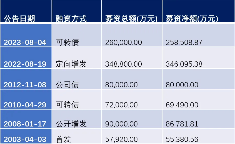 来自WIND;双良节能直接融资历年明细