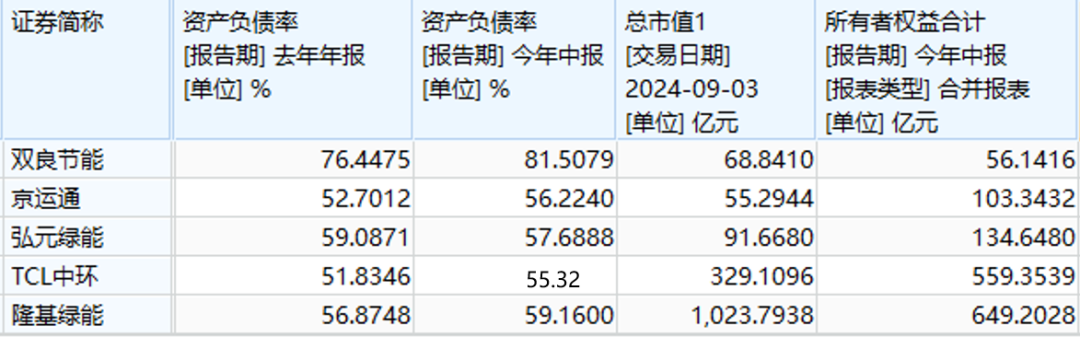 首先,双良节能的负债率在上市硅片企业中是最高的。