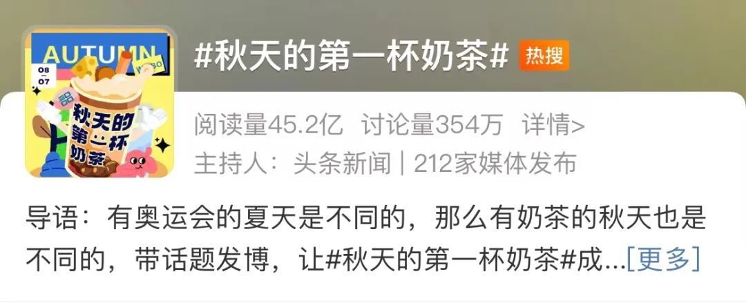 立秋时节,#秋天的第一杯奶茶#再次登上热搜,持续了5年的奶茶届“双十一”似乎一点没有热度消退的意思。如果说2020年“秋一杯”的走红是一个偶然事件,那么如今的“秋一杯”逐渐成为了一种社会文化现象,流行的根本原因是“秋一杯”形式本身给人们带来的情绪价值:在社交平台上,它是友情、爱情、亲情的具象化代表,更是年轻人自我奖励的一种形式。“情绪价值”是“秋一杯”营销成功的关键因素之一。