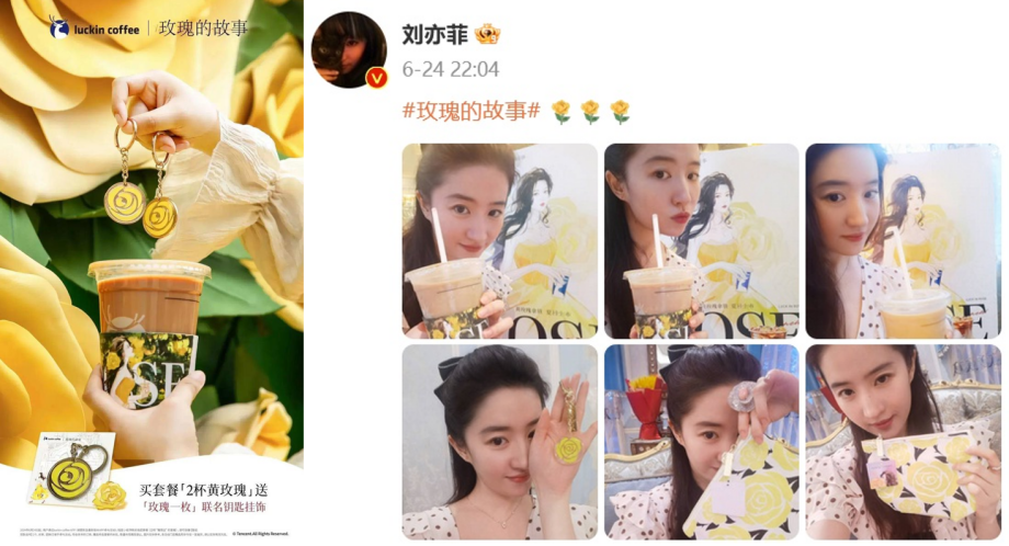 建立情绪共鸣,激活消费者。2024年上半年,《玫瑰的故事》大火,女主黄亦玫清醒且独立,“金句”频出引发无数共鸣。瑞幸趁机推出联名“黄玫瑰拿铁”,邀请主演刘亦菲为新品推广,成功引爆新品宣发,3个微博热搜,微博话题阅读量3000万+,小红书的话题阅读量2000万+,联名新品3天全国售罄。