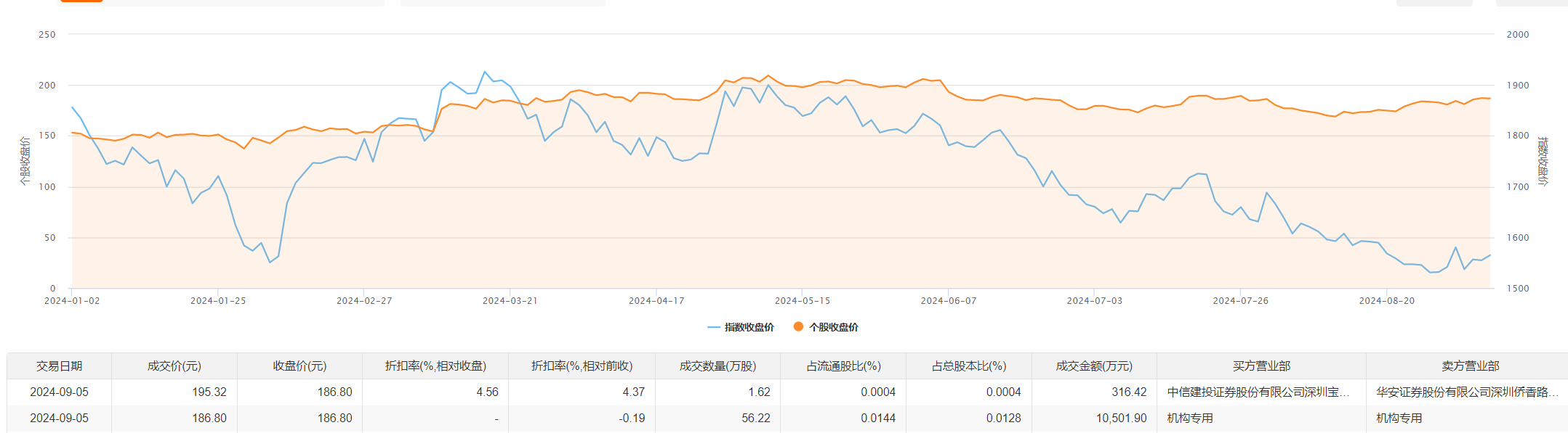 9月5日,宁德时代出现2笔大宗交易,合计成交1.08亿元。其中一笔1.05亿元为平价交易,买卖双方均为机构席位;另一笔溢价交易成交价为195.32元,买方为中信建投深圳创业二路,卖方为华安证券深圳侨香路。
