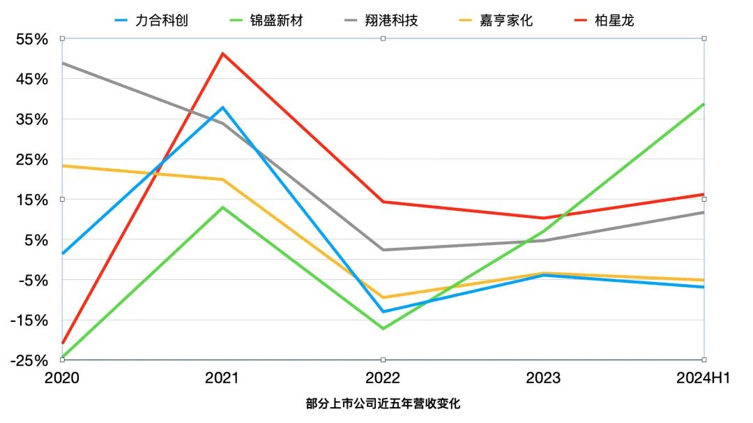 第四梯队的营收均在3亿元以下,包括柏星龙、锦盛新材均实现了双位数增长,分别为16.25%和38.73%,是几个梯队里增长势头最快的。