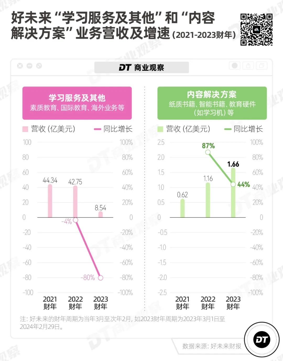 在“双减”之后,学习服务及其他业务的营收“断崖式下跌”,与此同时,内容解决方案的营收占比不断提升,其中,学而思学习机贡献了关键增长。