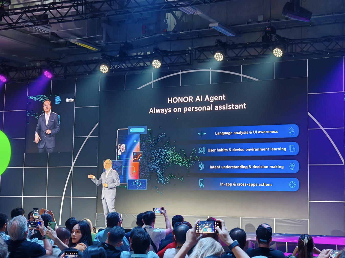 在今年的全球开发者大会上,苹果推出了与其系统深入融合的Apple Intelligence。当时,不少专业人士预测,Apple Intelligence远期目的即打造手机智能体。那首款AI Agent手机会是苹果么?近日,荣耀CEO赵明在2024德国柏林消费电子展(Internationale Funkausstellung Berlin,以下简称IFA)发布行业首个开放生态智能体,并宣布下一代旗舰产品Magic7系列将首发搭载HONOR AI Agent。此举意味着在苹果之前,国产手机厂商荣耀率先引领智能手机迈入智能体时代。
