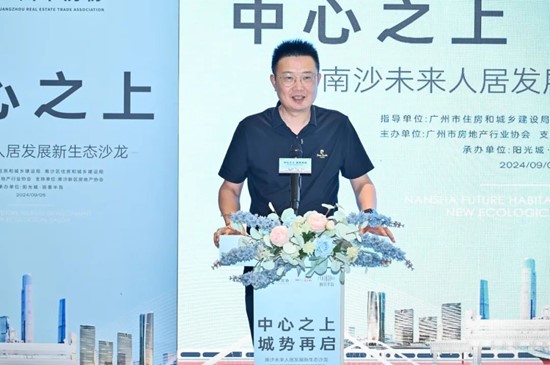 9月5日下午,由广州市住房和城乡建设局、南沙区住房和城乡建设局指导,广州市房地产行业协会主办,广州南沙新区房地产协会支持,阳光城·丽景半岛承办的中心之上·城势再启——南沙未来人居发展新生态沙龙圆满举行。广州市住建局房地产业管理处副处长宋加平,广州市房协执行会长陆毅,南沙区住建局副局长赵勇、房地产处处长吴泰斌,阳光城华南区域公司副总裁兼广州城市公司总经理刘裕明、阳光城华南区域公司营销总经理林柯冉出席活动。