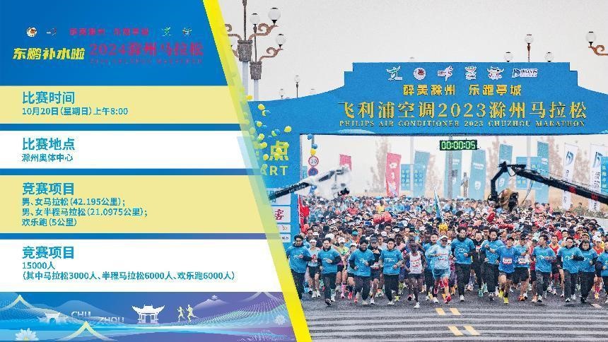 东鹏补水啦2024滁州马拉松已经通过中国田径协会A1类赛事认证,赛事由安徽省体育局和滁州市人民政府共同主办,安徽省田径游泳运动管理中心为省级路跑监管单位,安徽省田径协会提供技术支持,滁州市教育体育局承办。比赛将于10月20日于滁州奥体中心鸣枪开跑,设马拉松、半程马拉松和欢乐跑三个项目,总规模15000人,报名通道已于8月5日10:00开启,9月15日截止,其中马拉松3000人、半程马拉松6000人、欢乐跑6000人。