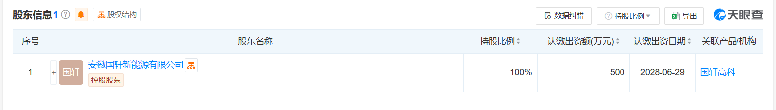 股东信息显示,该公司由国轩高科旗下安徽国轩新能源有限公司全资持股。