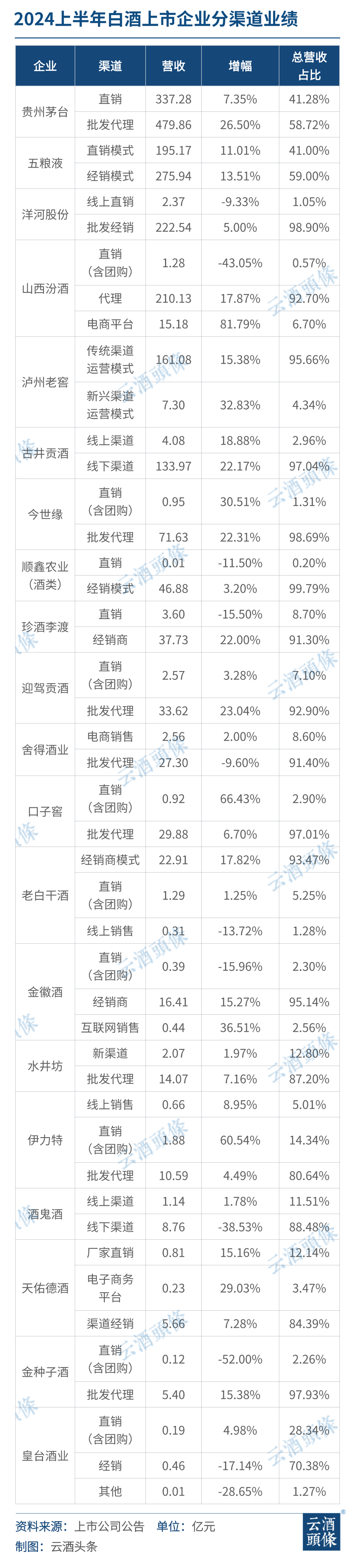 从日前白酒上市公司公布的2024年半年报数据来看,传统经销商模式仍旧是最主要的渠道收入来源。