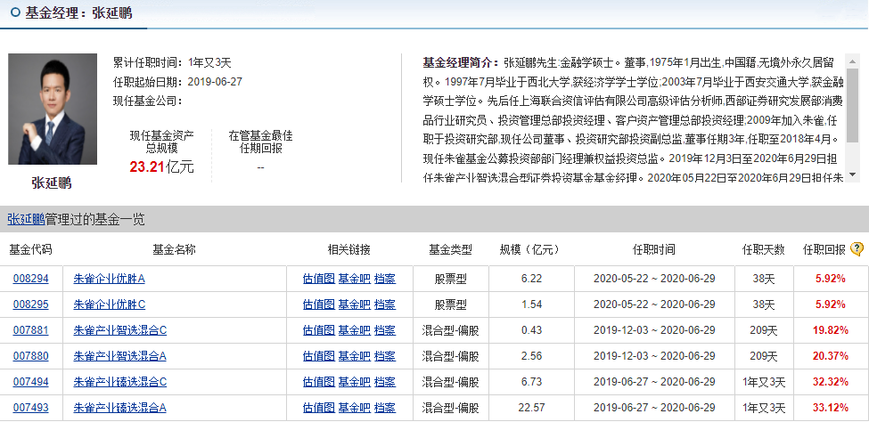 2020年6月,曾管理三只权益产品,并荣获"金牛私募投资经理"的明星基金经理张延鹏从朱雀基金离职。