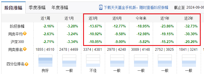 朱雀基金规模迅速滑落,与公司旗下基金的业绩表现直接相关。截至今年9月6日,朱雀基金旗下13只权益类产品2024年亏损均超过14%。